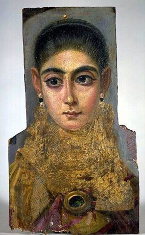 End of the Reign of Trajan, 98-117 A.D., Wax portrait on wood.