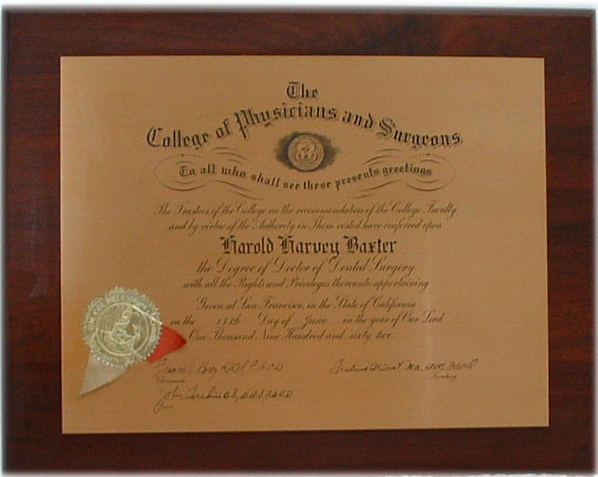 In June of 1962 Dr. Harold H. Baxter graduated with a Doctor Of Dental Surgery degree and opened his